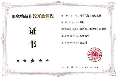 这是陈彬教授近三年来入选的第二门国家级精品课程(2016年“时装奢侈品牌设计探秘”获批国家精品视频公开课),也是我校在线开放课程建设上的一大突破。陈彬主讲的“时装文化与流行鉴赏”在智慧树和爱课程平台上线,仅智慧树平台选课人数超过3万人,选课学校累计143所。他在课程建设工作中紧跟时代步伐、不断探索进取,为我校的慕课发展与建设做出了积极贡献,其取得的系列成果为我校教师在慕课建设方面提供了宝贵经验。