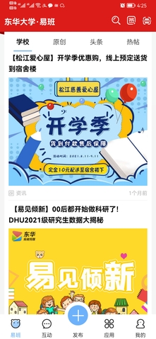 新生校园攻略、萌新大数据、疫情防控指南、防诈骗案例…在疫情防控常态化阶段,学校易视传媒中心精心准备了丰富多彩的“易见倾新”线上大礼包,积极通过易班在线开展新生入学教育,实现了新生入学教育”前置”。在“新生教育系统”中嵌入基本信息、学事项查询及学生手册、垃圾分类及安全教育常识自学功能,帮助新生在入校前开启大学生活、领略大学魅力。依托易视传媒抖音平台及微信视频号首发学生自主设计的新生文化衫,充分展现学生的设计创意及青春活力,为新生递上崭新的校园“见面礼”。推送“新生大数据”专帖,深度分析挖掘新生数据亮点,呈现“有趣”又“有料”的新生大数据“独家”解读。各学院也积极开拓新生入学教育网络阵地,在创新网络思政工作上各显神通。服装与艺术设计学院通过迎新系列贴、书籍盲盒、导师导生易班答疑、网络宣讲等活动,为2021级新生营造浓郁迎新氛围,开启新生青春飞扬的校园生活。机械工程学院利用网络阵地立体式推进迎新工作,在易班开辟“念伊廿一”迎新专栏,在B站平台开展“校园直播巡游”,立足抖音短视频平台持续发布“史上最全东华攻略”“揭秘网红月饼背后的学生设计团队”等创新短视频。化学化工与生物工程学院利用易班、B站和视频号等平台,开设花生仁迎新直播看东华,录制系列主题微课,优化“易班+迎新”高质量内容供给,深度围绕百年党史和七秩校史引领师生爱国荣校,把新生入学教育搬到线上、做在前头。材料科学与工程学院借助易班平台推出“材易小贴士”专栏,新生入学当天推出“‘易’起游校园”活动,助力新生扫除初入校门的“未知障碍”。上海国际时尚创意学院借助易班、微信等网络新媒体平台发布新生攻略,举办创意T恤设计大赛,并将获奖作品制作成为新生T恤,发放给每位新生。